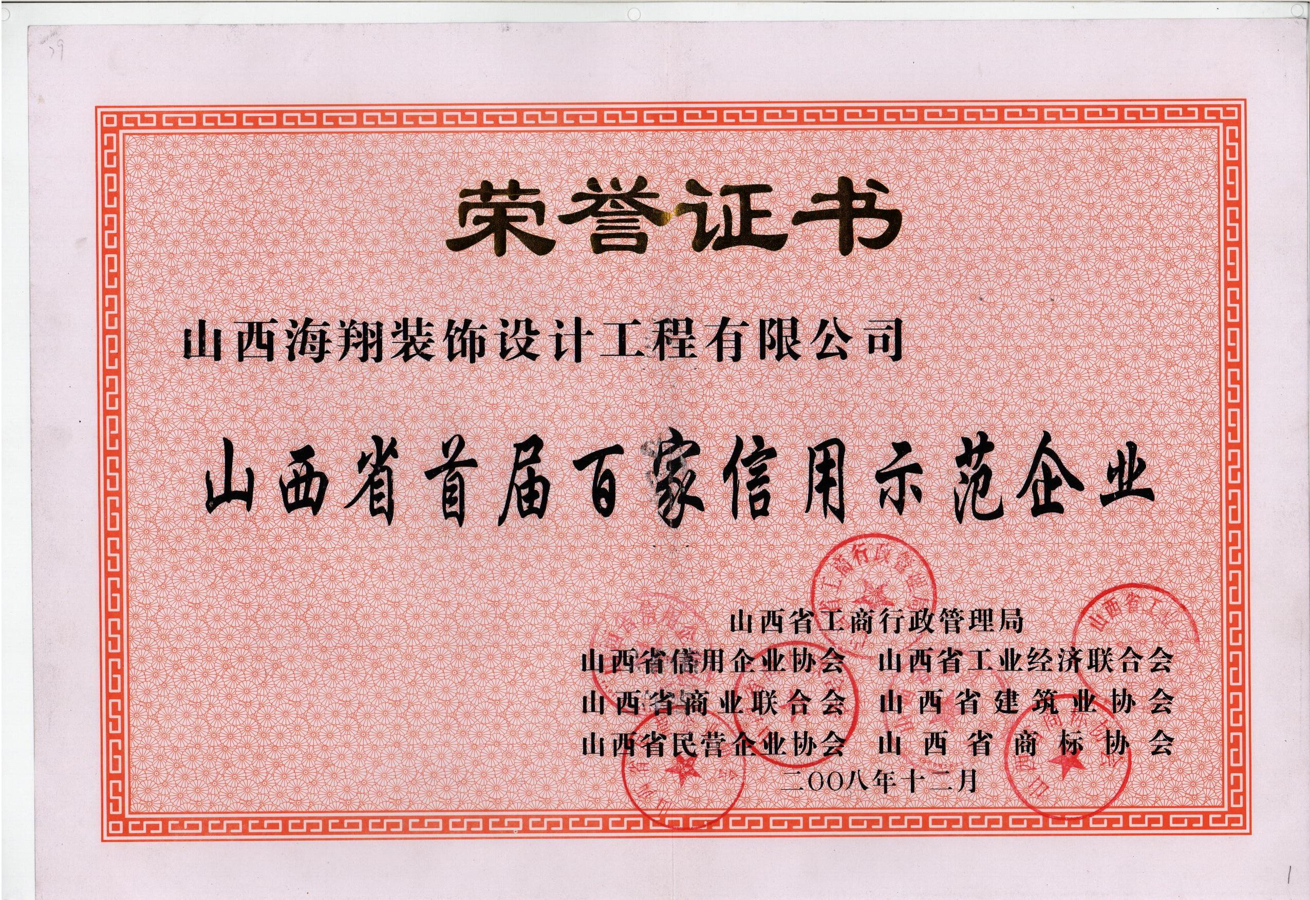 2008年山西省首屆百家信用示范企業(yè)