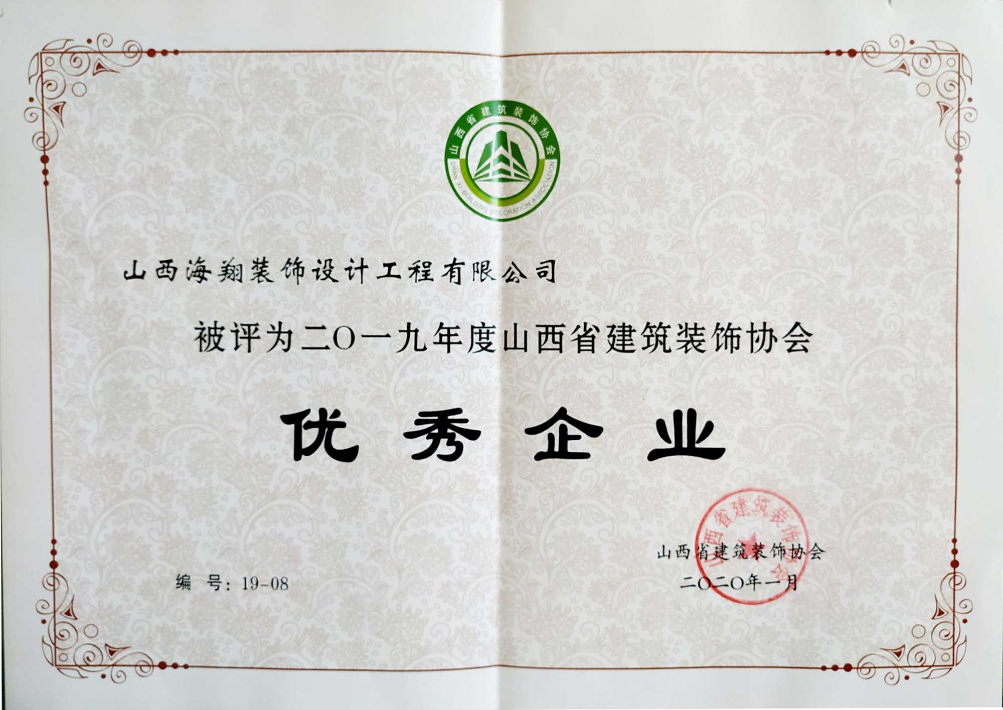 2019年優(yōu)秀企業(yè)榮譽(yù)證書(shū)