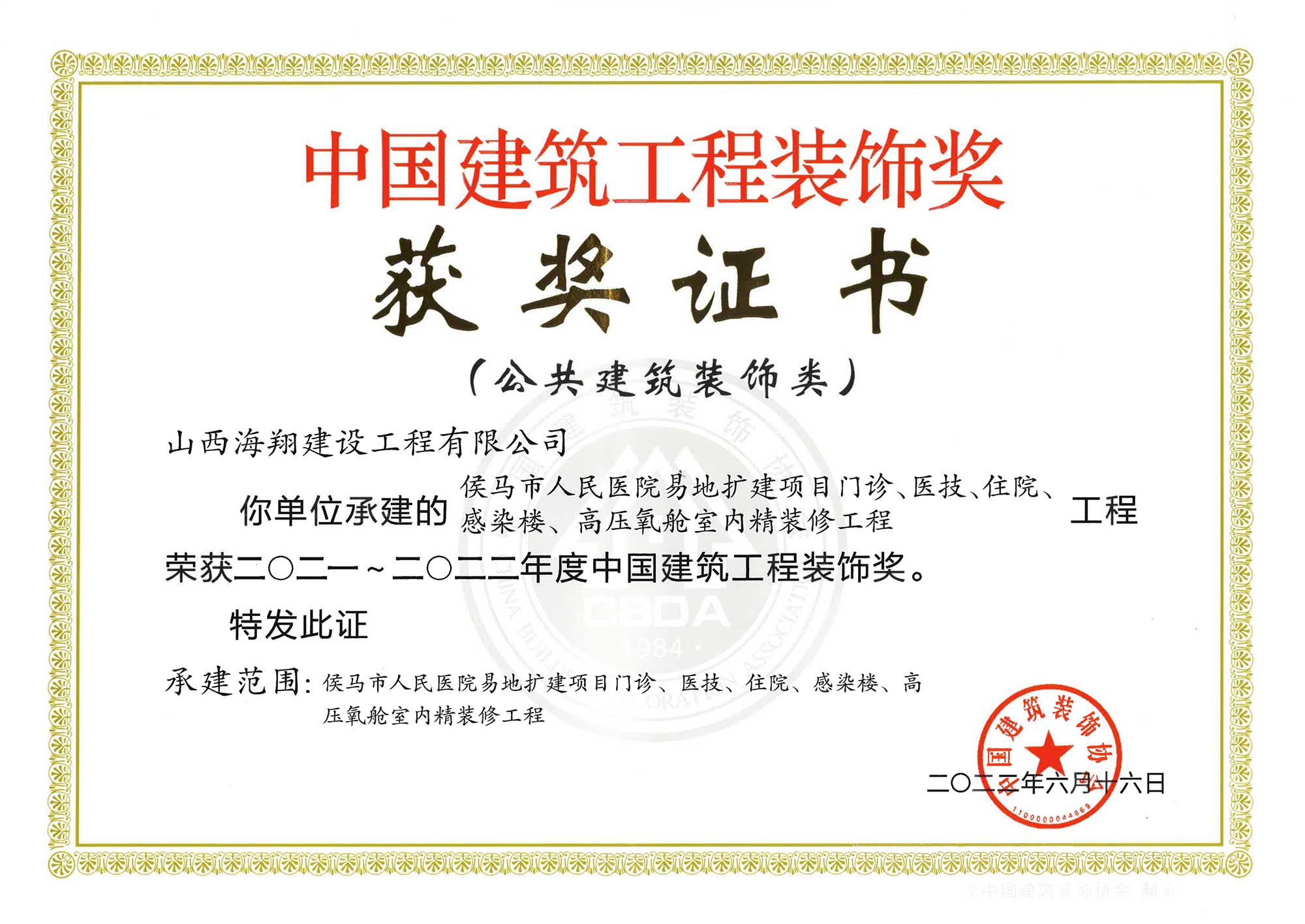 2021-2022年度侯馬醫(yī)院公共建筑裝飾獎