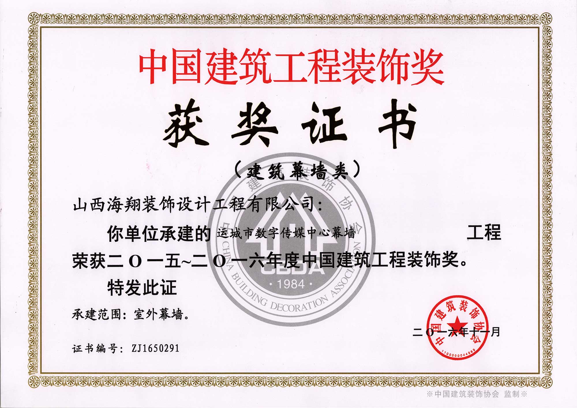 2015-2016年度-運(yùn)城市數(shù)字傳媒中心幕墻-中國(guó)建筑工